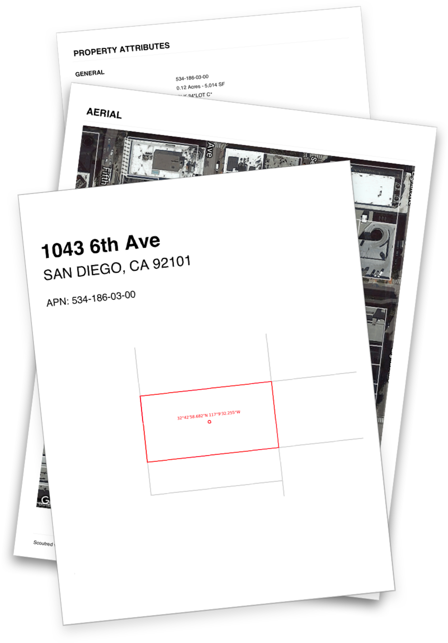 Extract parcel data for use in spreadsheet programs like Microsoft Excel and Google Sheets or generate a client ready PDF property report.